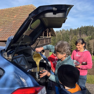 Am frühen Samstagmorgen begannen Erika Reist und Martin Niederhauser mit der ersten Ladung Suppe zu kochen. Ab 10:00 ging es dann los auf den "Cher". Über die Oschwand, den Zimmerberg, den Breitenwald, durch den Lauterbach und das Dorf. Die Suppe wurde sehr willkommen geheissen.
